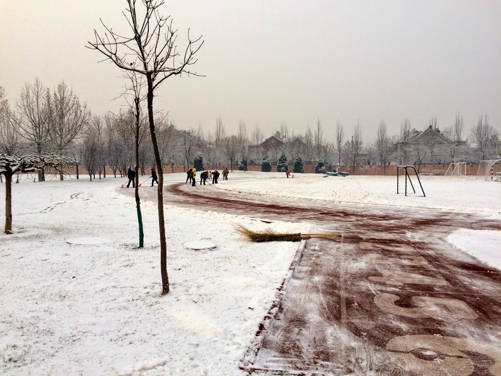 Onsdag vågnede vi op til sne i Tianjin. Smukt hvidt sne og koldt frostvejr. Det løftede lige humøret og julestemningen med mange grader, at gå til skole med en hoppende dreng. Selv om vi hverken har vinterstøvler eller vintertøj kom vi gennem vintervejret med højt humør.