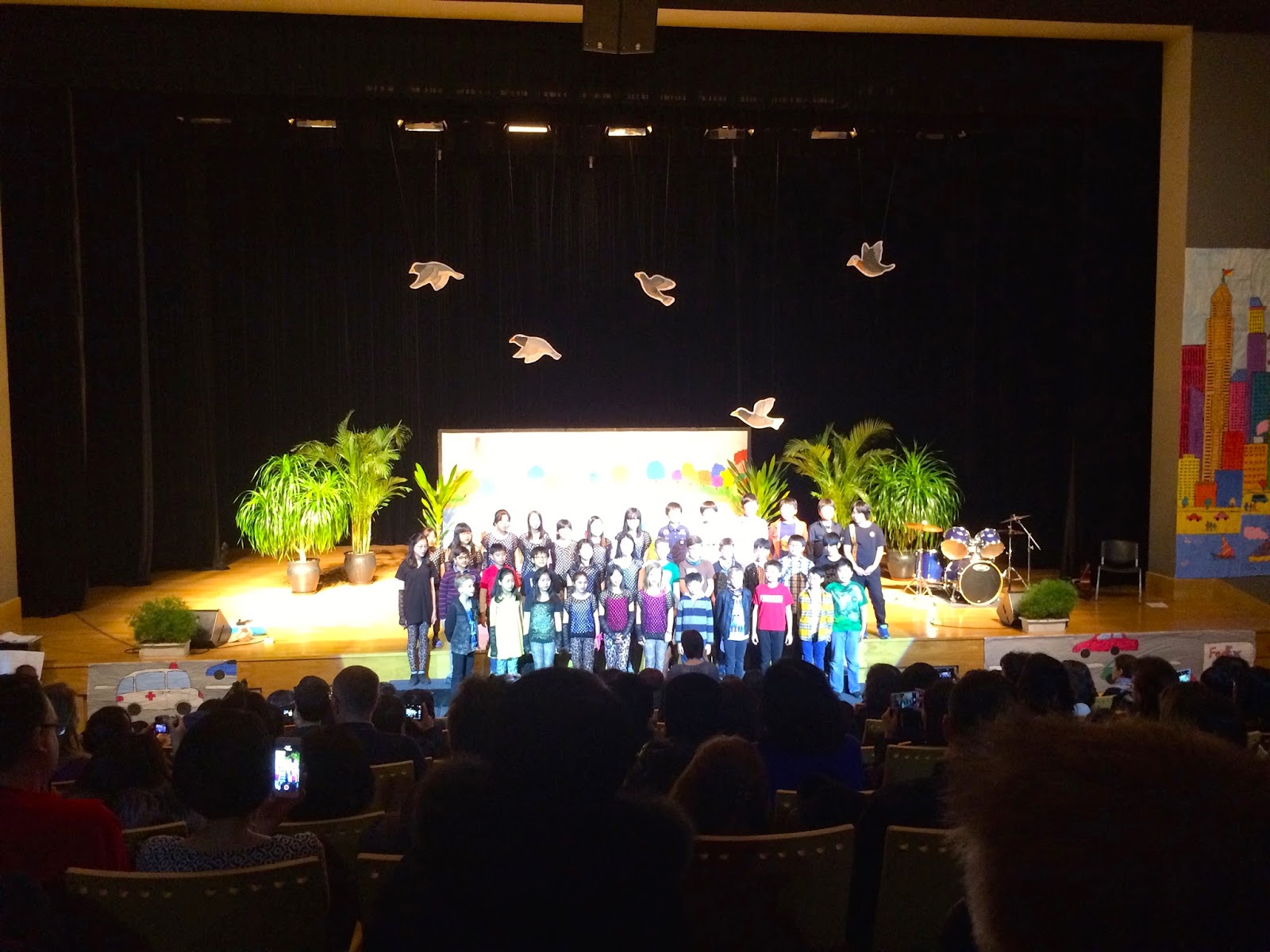 Onsdag aften var der Wintershow på skolen. Alle elementry eleverne (nursery til grade 5 – altså fra 3 år til 5. klasse) havde hvert et indslag, en sang og dans de opførte. Det var meget sjovt, rørende og helt fantastisk at være med til. Valdemar havde sagt, at deres musiklærer til prøven havde sagt, at de lød som en syg hest – men jeg blev faktisk i helt vildt godt humør af at se og høre dem.
