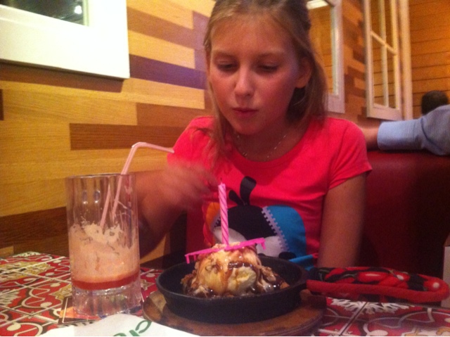 Onsdag fyldte Leonora 11 år. Den store, dejlige pige 🙂 Vi havde besøg af Marie og drengene til fødselsdagskaffe (vidunderligt at have dem så tæt på, at de kan komme en onsdag eftermiddag) Og så havde hun bestemt vi skulle ud at spise på Chili’s, hvilket vi var – og de sang fødselsdagssang for hende og kom med fødselsdagskage, ganske som hun havde håbet.