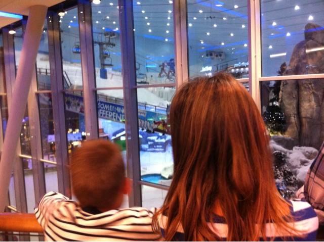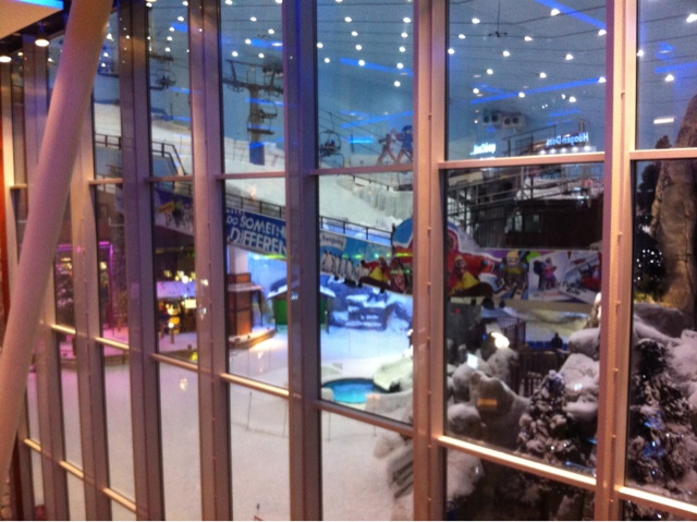 Nå, men efter kørekortet i går, var klokken blevet lidt mange – så vi tog i Mall of Emirates og spiste aftensmad og tog nogle billeder af toilettet med PH lamper – og skibakken. Den er stor og fin, med mange aktiviteter også uden ski. Det skal vi prøve en dag.