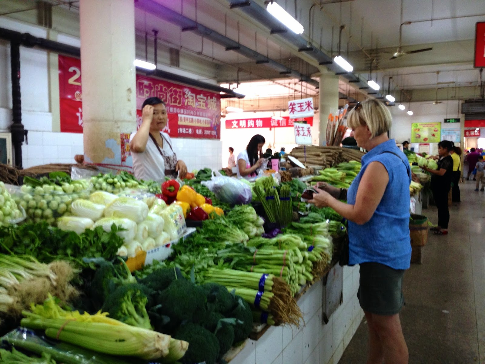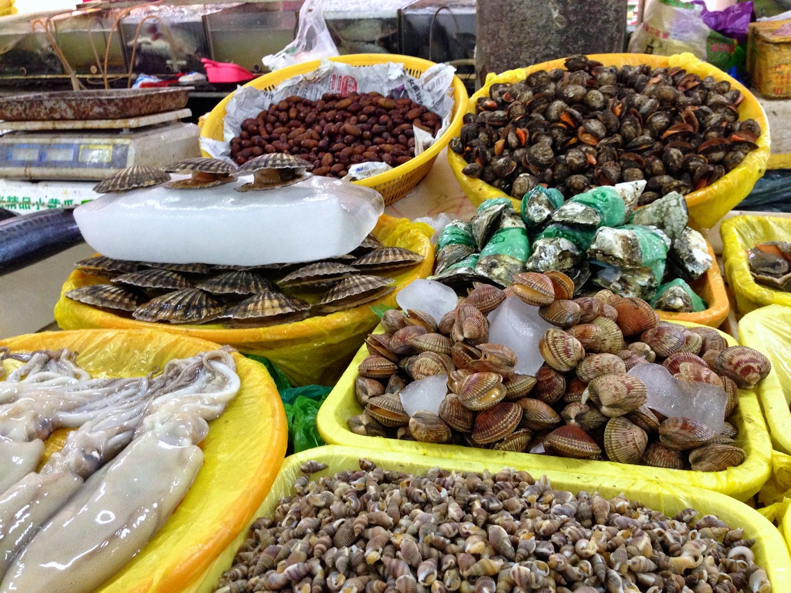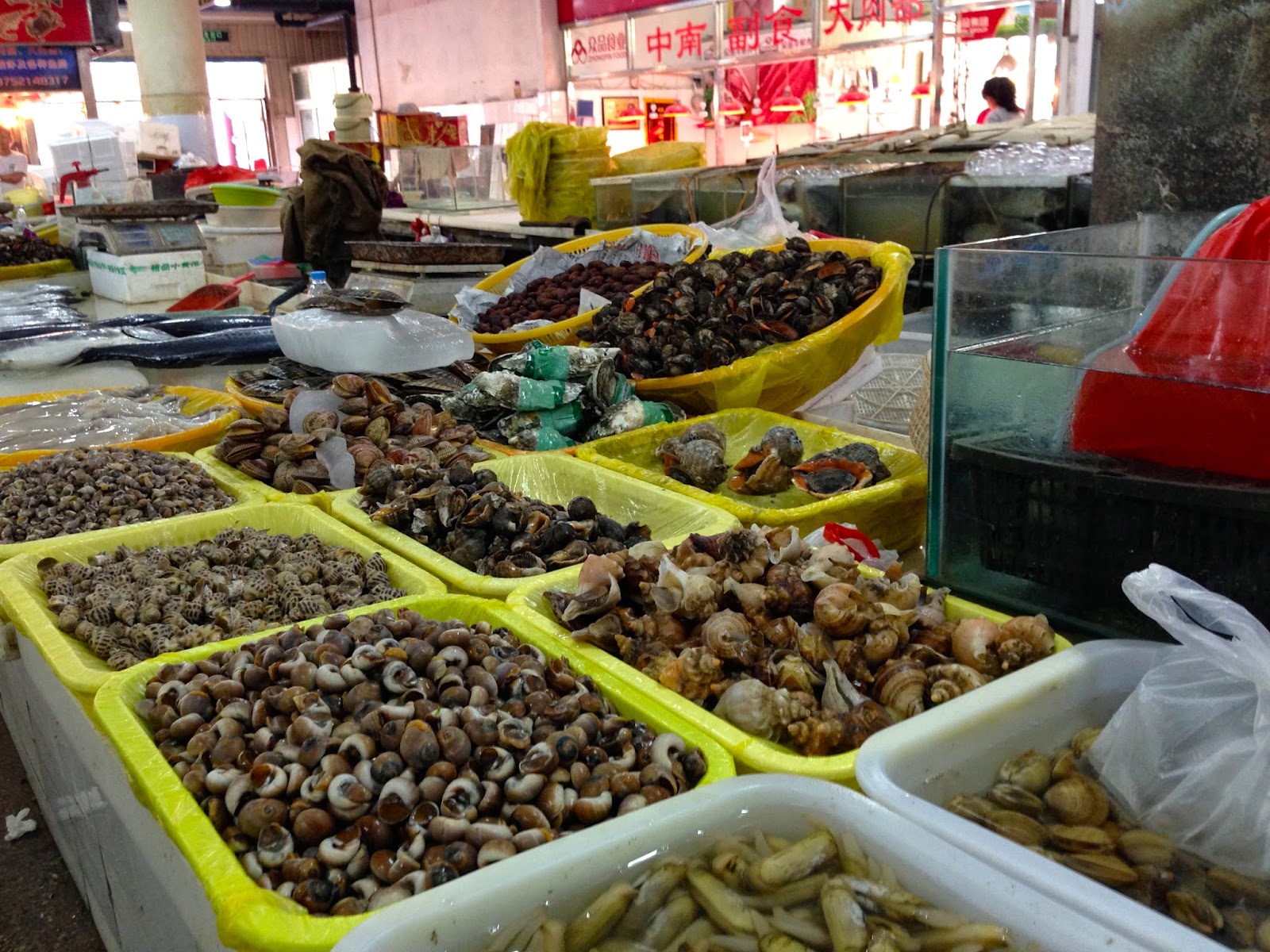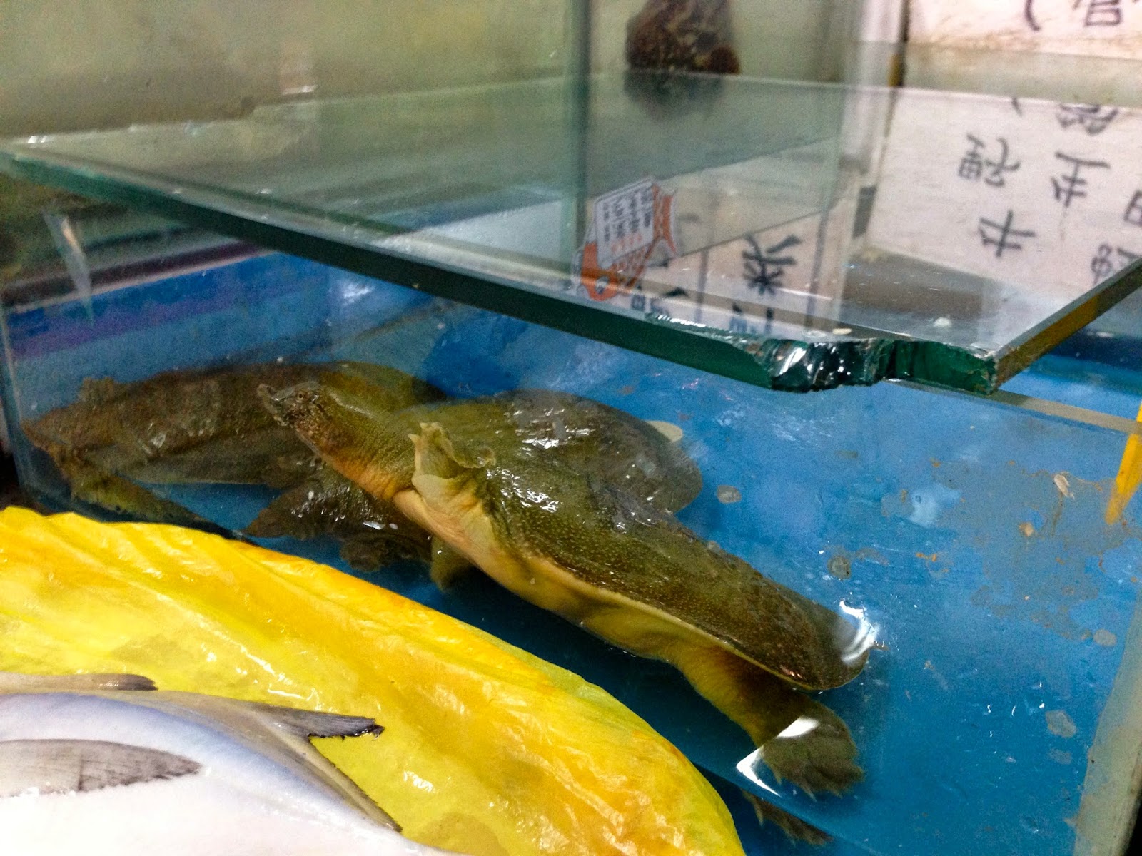 I denne uge har jeg været med på markeder. Med alt muligt skrammel, “antik”, perler, “jade” – men fik altså kun taget billeder fra Tibei, der er grøntsagsmarkedet. Hvor de altså også har meget andet – kød, fisk, spande – og altså frøer og skildpadder. Jo, det er jo til at købe og spise 🙂