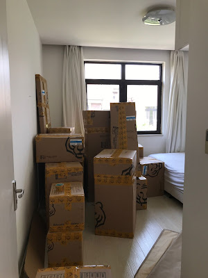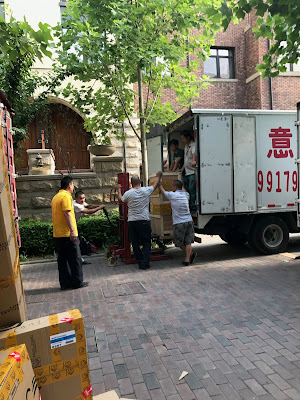 Og så tredje dag, kom de stærke bære – flytte – folk. Og så gik det stærkt. 3 – 4 flyttekasser kan man da sagtens bære ad gangen..