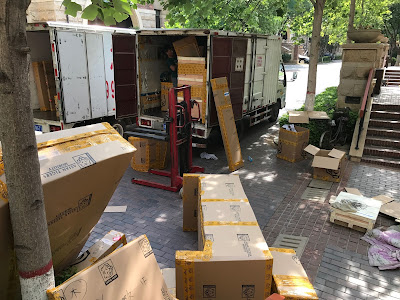 Så skal det bare pakkes i lastbilerne, køres på havnen og pakkes i containeren. Klar til afgang. Vi ser det om 8 uger.