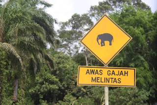 På vejen Singapore – Mersing så vi også aber i vejkanten. Det var en meget smuk tur. Desværre så vi ingen elefanter – kun skiltet her.