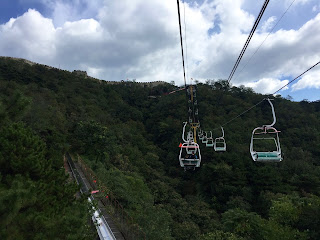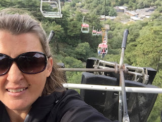 Vi tog svævebanen op – og bobslæde banen ned. Det var sjovest på vej ned.