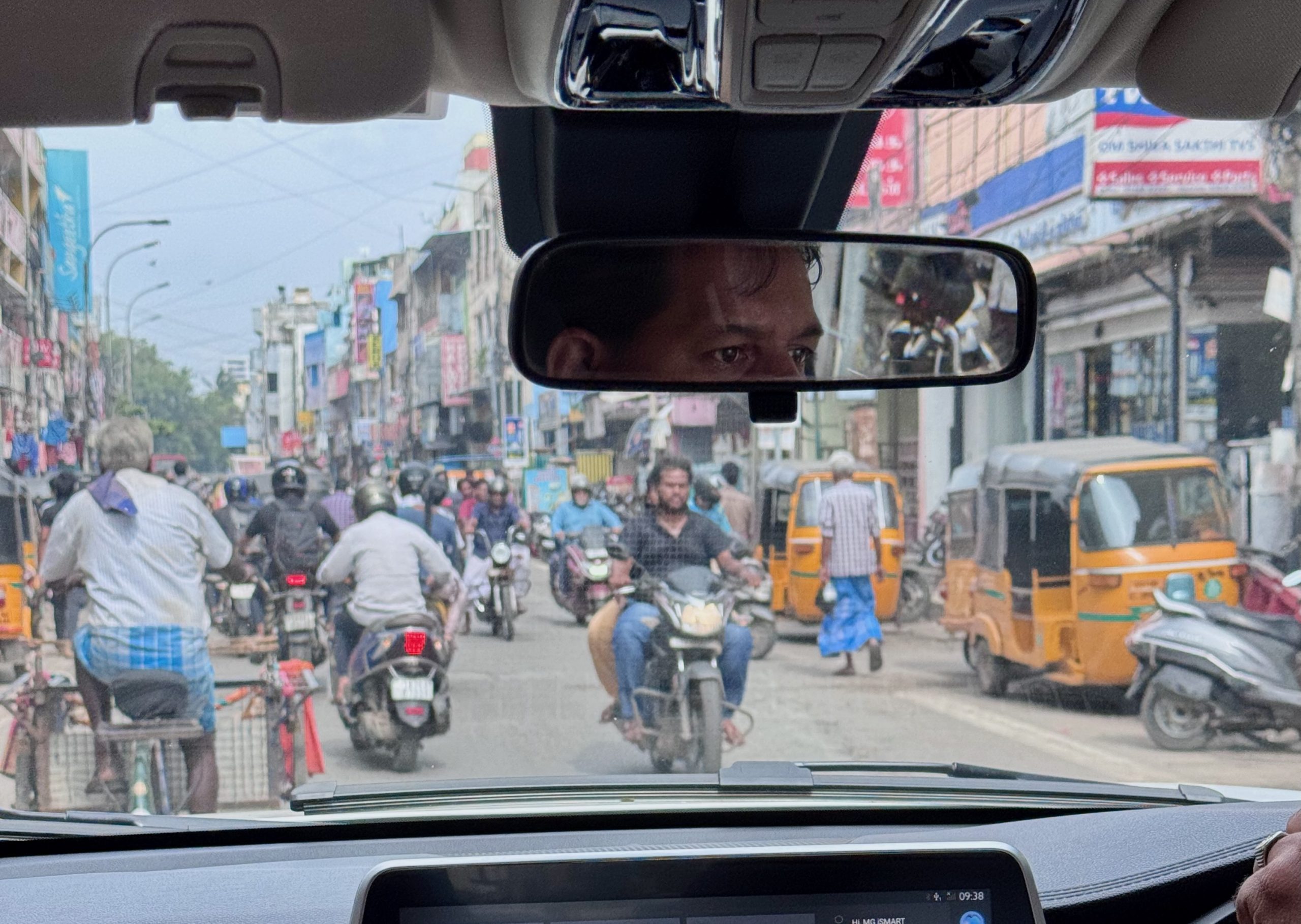 Det lyder umiddelbart prangende at have en chauffør, som vi jo også har her i Indien. Men det er en nødvendighed af mange grunde. Jeg ville ikke have det rart med at skulle køre rundt her, – og vores forsikring ville ikke være begejstret (eller give os lov). Desuden er byplanlægningen alternativ – jeg har sådan cirka styr på nogle fixpunkter i byen, og ved nogen gange om vi kører syd eller nordpå. Men det har også taget mig et år – og når vi kører rundt i de små gader er jeg helt lost. Jeg ville virkelig være udfordret og have en meget høj puls, hvis jeg skulle køre rundt på egen hånd i gaderne – og ikke være sikker på at jeg nogensinde ville finde frem.